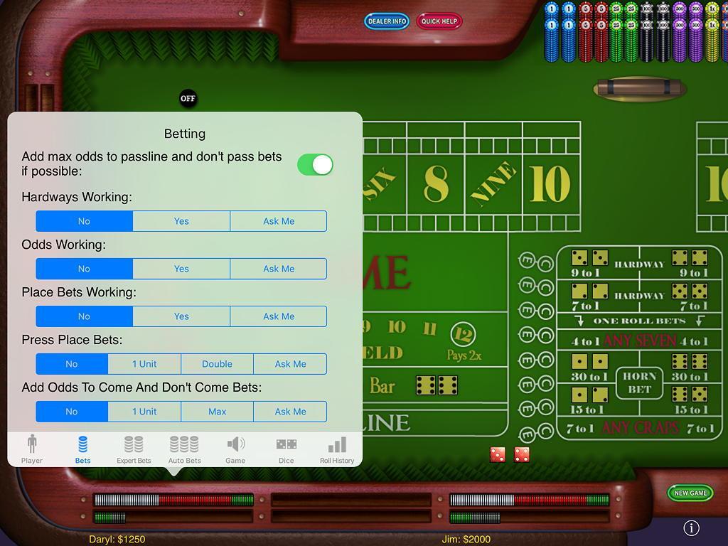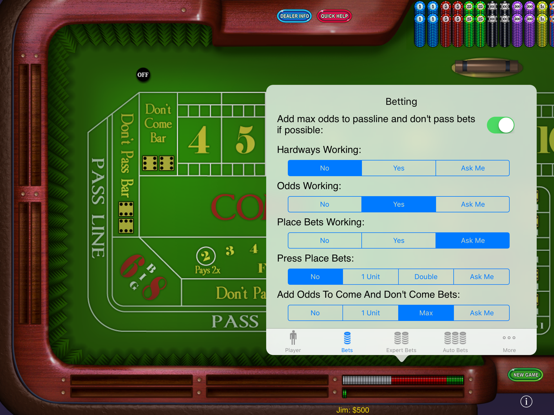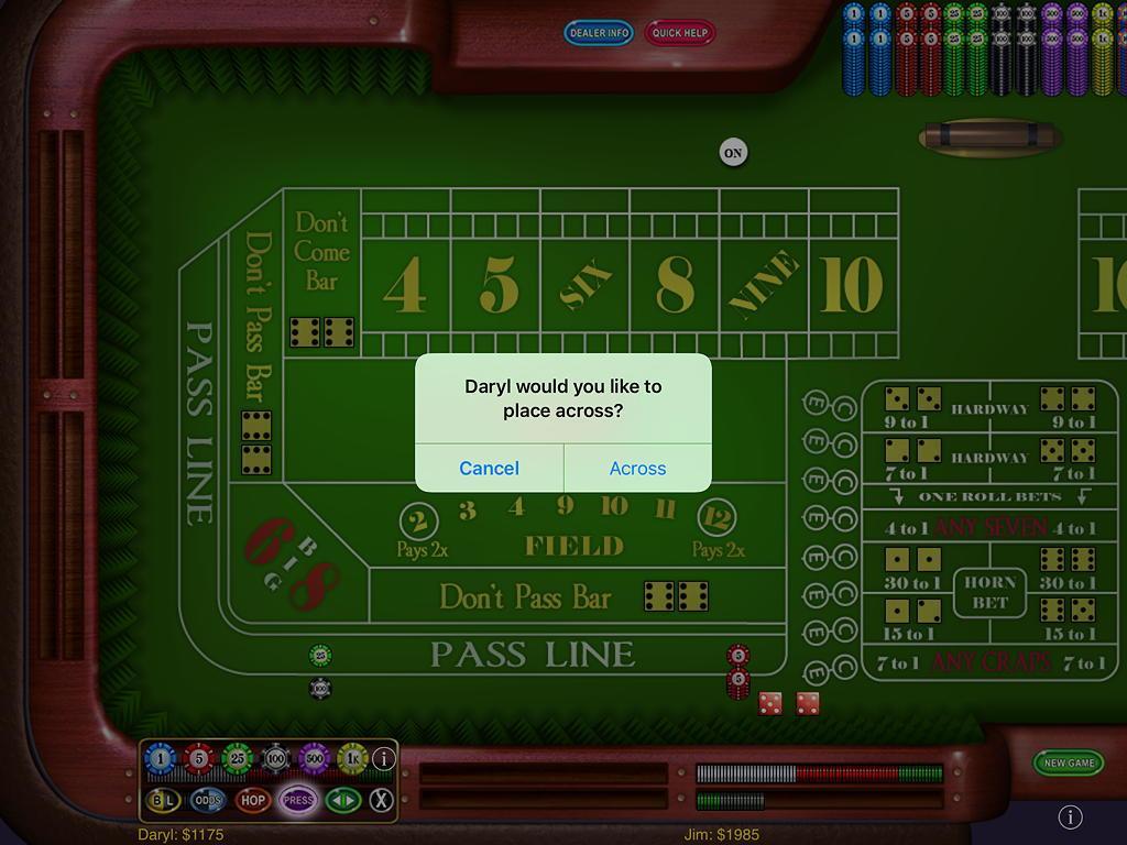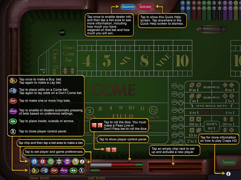 "Ask the dealer" button gives you information about payouts and how much you have wagered on each bet.