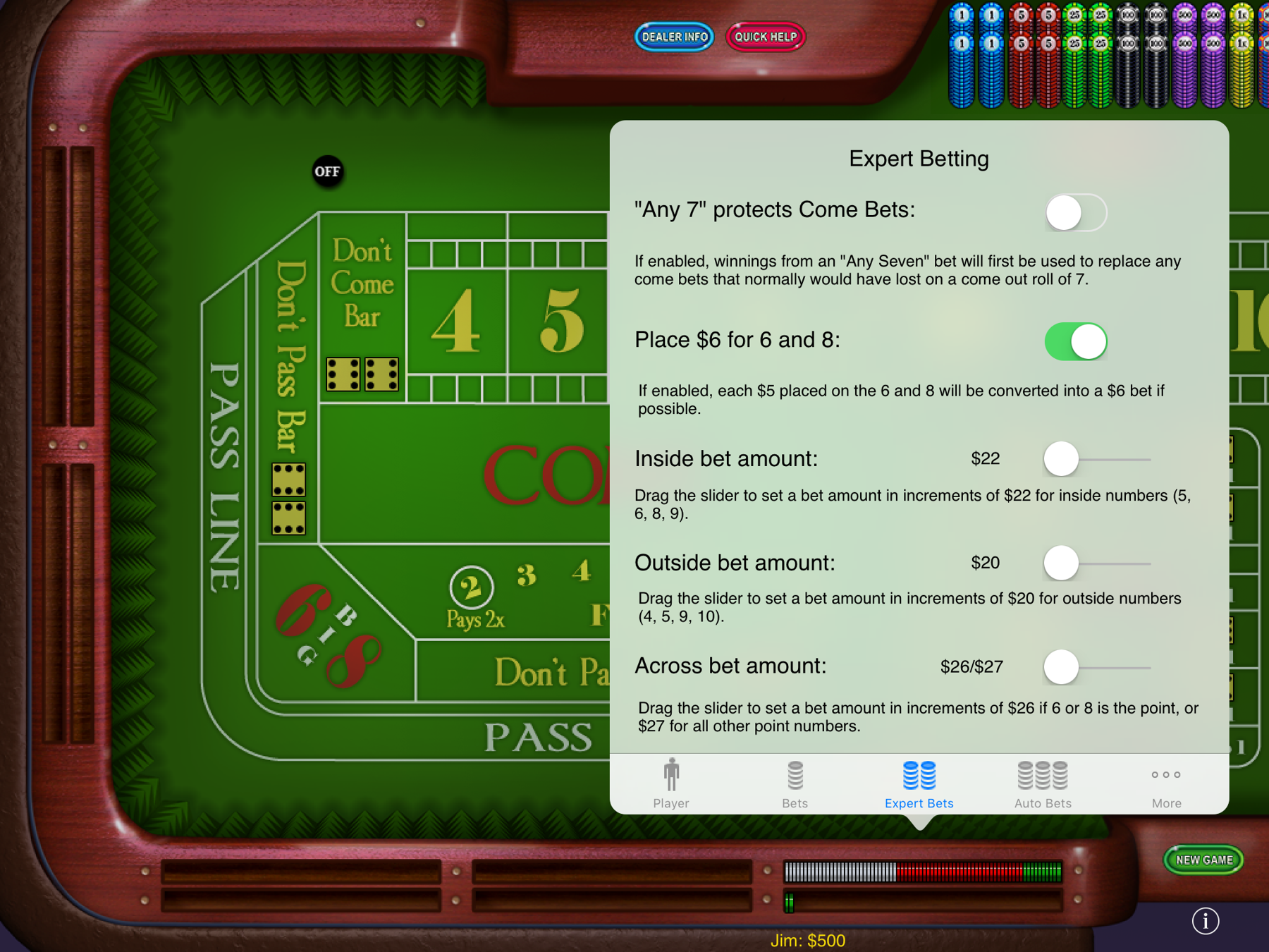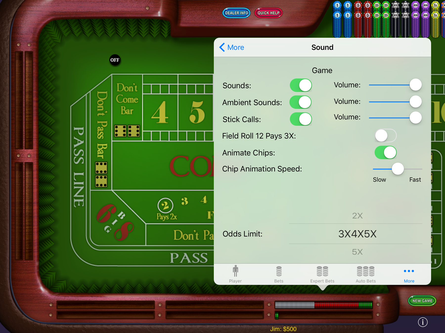 Preferences for rhythm/controlled shooter option - reduce 7 outs and set the dice to one of six popular sets.
